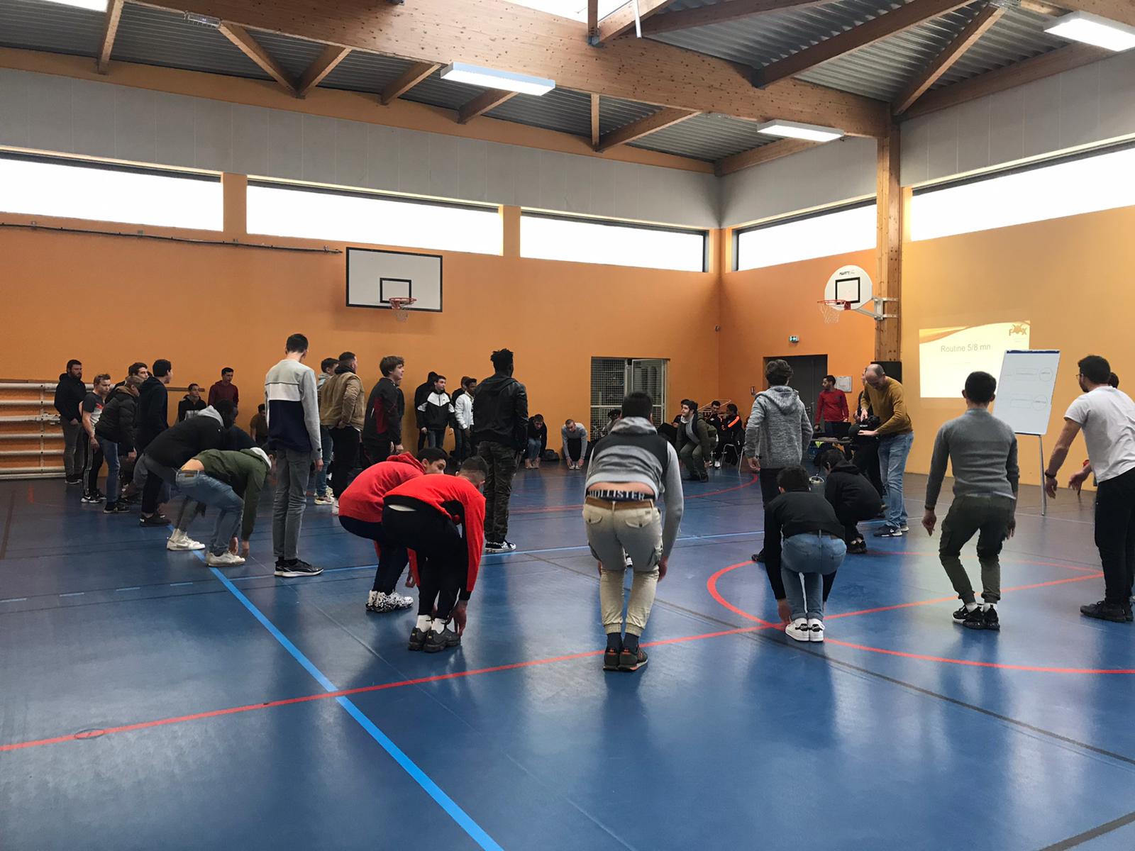 Dans le cadre du projet national CCCA-BTP « ccca-btp.fr/prix-projet-btp-btp » nos #apprentis du CFA de Saintes, ont eu l’opportunité de rencontrer des sportifs de l’US Saintes Handball ainsi que leur préparateur physique, Erwan CLAIN. Afin de leur montrer l’importance d’une bonne préparation musculaire avant une journée de travail.