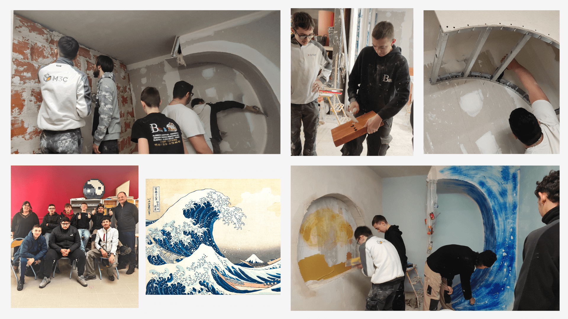 Le savoir-faire en plâtrerie, plaquisterie et isolation a été au cœur du projet. Les apprentis ont réalisé une série d’activités allant de la réalisation d’enduits au plâtre allégé à la création de structures complexes en plaques de plâtre sur ossature métallique.