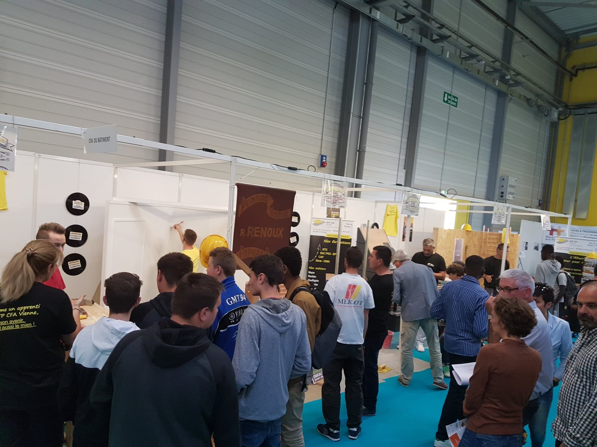 Le week-end dernier, nous étions au parc des Expositions de Poitiers dans le cadre du salon Maison, déco & vintage. L’occasion pour les apprentis du BTP CFA Vienne ainsi que leurs formateurs de faire découvrir au public différents métiers du BTP, en réalisant des ouvrages en direct.